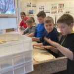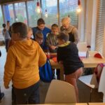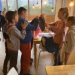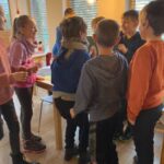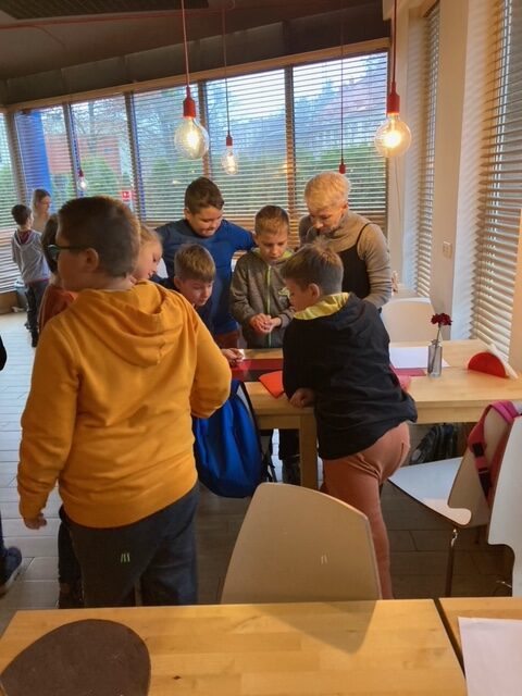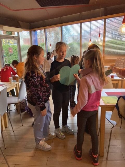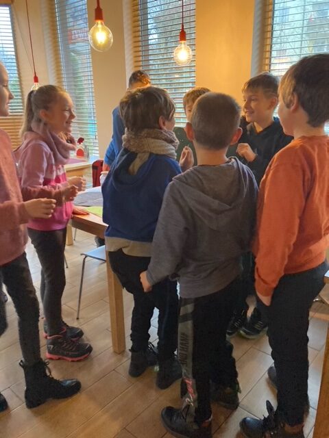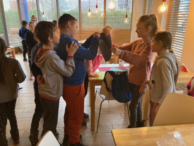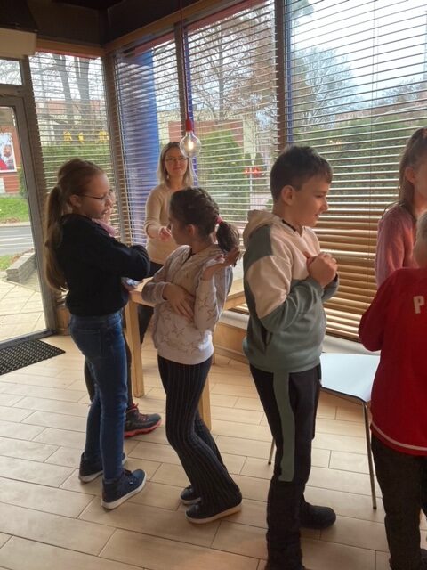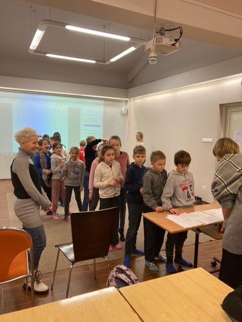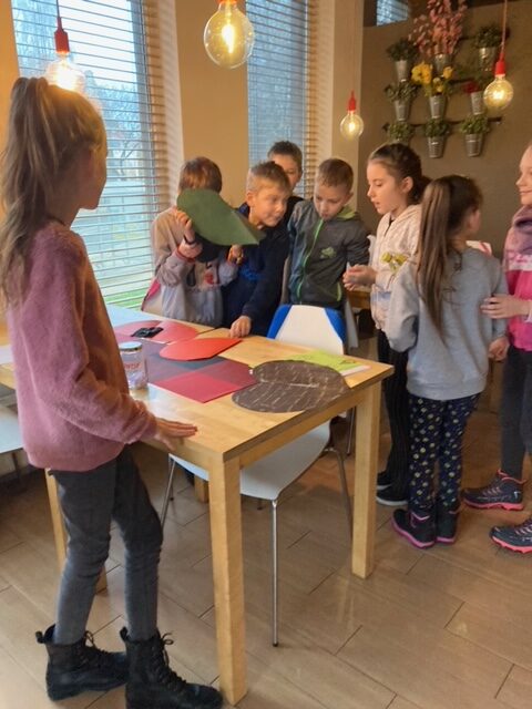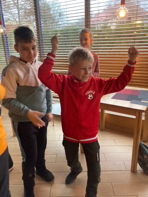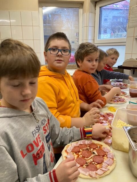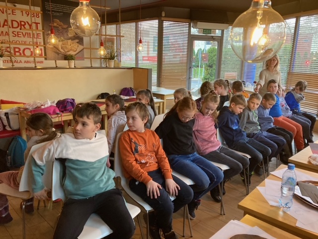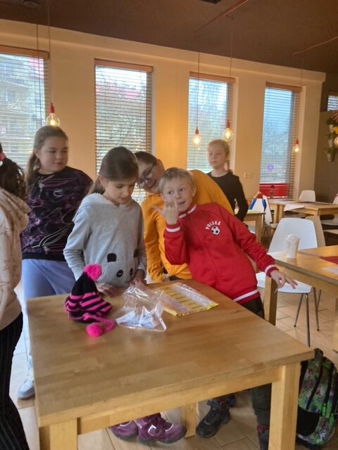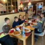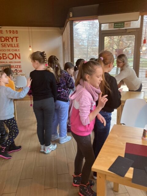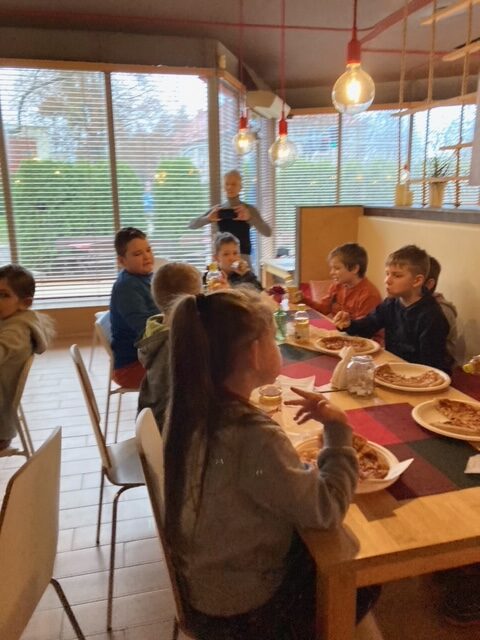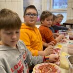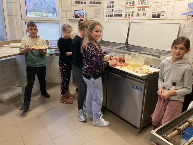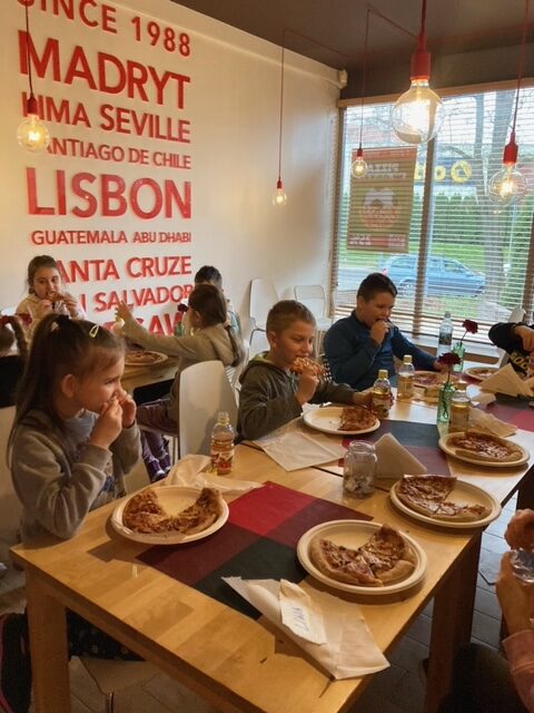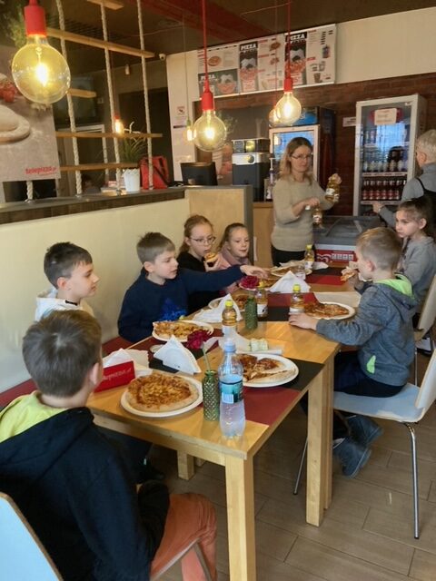 Dnia 29.11.2022 r. uczniowie klasy IIIb i IIIa pojechali do Telepizzerii w Olsztynie oraz na warsztaty tworcze z książkąobrazową do biblioteki pedagogicznej. W pizzerii mieli możliwość samodzielnego przygotowania pizzy oraz wybrania dodadatków. Ponieważ uczniowie byli podzieleni na grupy, to kiedy część pracowała w kuchni, pozostali brali udział we wróżbach i zabawch andrzejkowych, przygotowanych przez klasę IIIa oraz panią Iwonę S. Wszyscy doskonale się bawili. Następnie udali się do biblioteki na warsztaty twórcze pt. „Zagadki w kieszonce”. Panie z biblioteki przygotowały pudełka z przedmiotami w środku. Zadaniem każdej grupy było podanie dwóch cech przedmiotu znajdującego się w środku oraz zilustrowanie go za pomocą pantomimy. Uczniowie z wielkim zaangażowaniem potrafili wykonać zadanie. Oglądali też i odgadywali „Zagadki z kieszonki” Iwony Chmielewskiej. Mieli możliwość stworzyć własną zagadkę w kieszonce, którą prezentowali na tablicy multimedilnej, pozostali zaś odgadywali. To była wspaniała zabawa połączona z nauką. Dzieciaki były zachwycone. Grupa coraz lepiej się integruje.