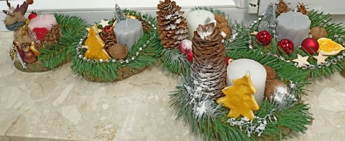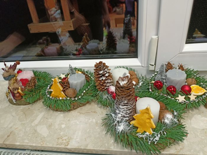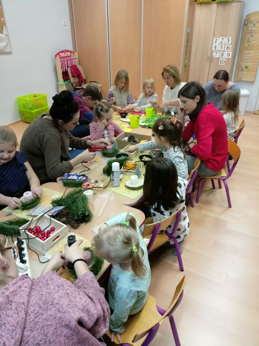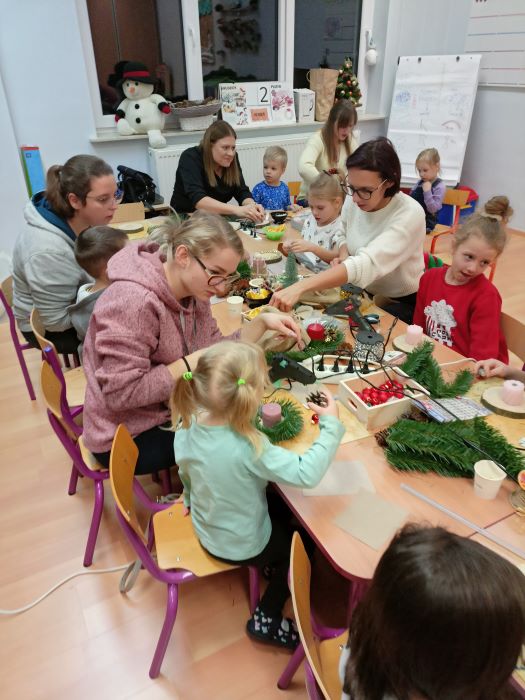 Dzieci wspólnie z rodzicami wykonały piękne i niepowtarzalne stroiki świąteczne.